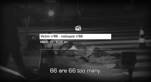 It’s the year-long radio campaign you’d rather not hear. Because every time it airs, somebody just died in a road accident – in real-time. The dynamic radio campaign, called Behind the Numbers, is directly connected to national police data. Every time somebody gets killed in traffic, a pre-recorded radio spot with an updated number of victims airs instantly across five different radio channels simultaneously. Each unique spot was recorded by real parents of road victims.