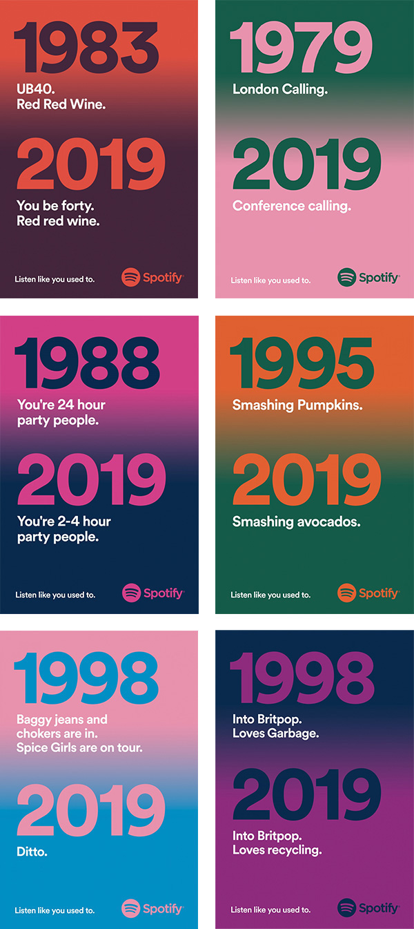 Hats off, Spotify – you’ve nailed it! I get every reference and every reference gets me. As a Gen-Xer who lives for music, I’m not sure if I’ve ever felt so understood by an ad.