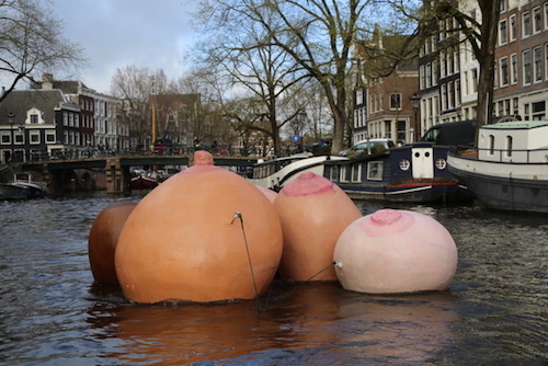 In Amsterdam on International Women’s Day, a flock of giant buoyant breasts glided blissfully down its beautiful canals, to celebrate the fact that boobs are just boobs.