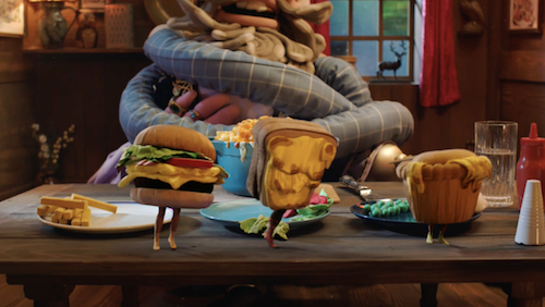 The campaign film is the dream of a cheese-lover. It’s a pretty wild dream. (The strategy was inspired by the old wives’ tale that eating cheese at night cheese causes vivid, unusual dreams.) The dreamer’s arms grow incredibly long until they are able to reach through the sky to a restaurant nestling in the clouds, which they then grab and put on their head, like a very strange helmet. Inside is a tiny pub, where a pirate whose beard is made from socks sits before a very cheesy feast – including a cheeseburger and cheese on toast that are both able to walk around. The woman’s arms free the cheesy food, and that food is very grateful.