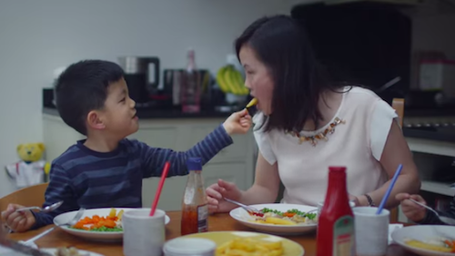 The ad is lovely to watch because it’s real. No one ever shows dinner time as the hectic chaotic event that happens in a rush it tends to be in real life. In fact, the ad also features ten real families.