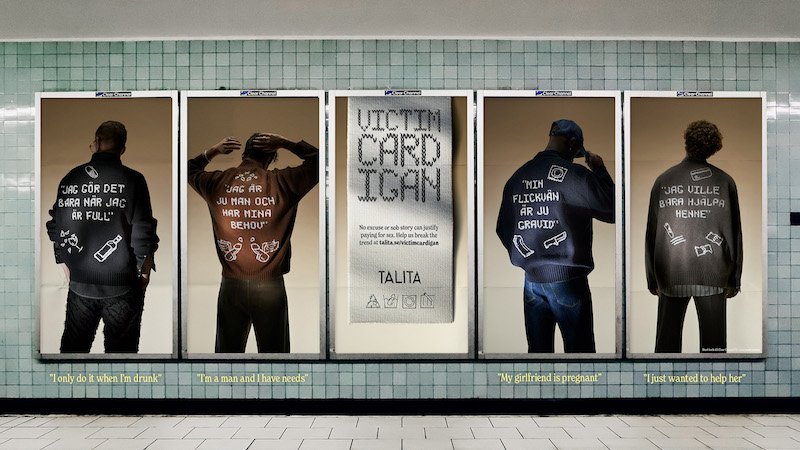 In Swedish, “playing the victim card” can be directly translated into “wearing the victim cardigan”, an idiom that was literally out to use here, in order to grab the public’s attention. So Talita launched a limited edition of Victim Cardigans in collaboration with fashion brand, HOPE Sthlm. The cardigans were based on the most common excuses used by men arrested for solicitation.