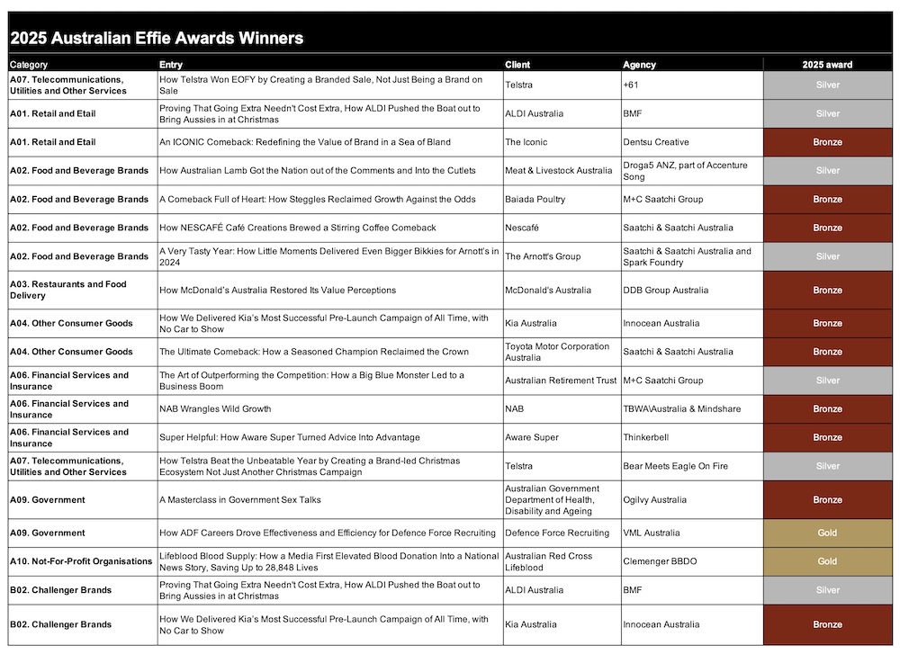Tony Hale, CEO, Advertising Council Australia, stated, “The Effies have always been about celebrating marketing that truly delivers. This year, we saw an increased number of winners, reflecting a growing focus across the industry on work that moves the needle, challenges conventions, and demonstrates the value of creative impact. Congratulations to all who were recognised for their outstanding achievements.”