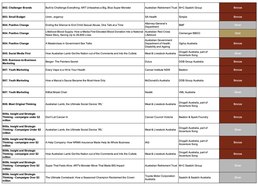BMF won Effective Agency of the Year with 1 gold and 4 silvers for ALDI Australia, as well as 1 silver for the Attorney-General’s Department. The judges commented, “This was an excellent, clearly structured submission. We appreciate how a fearful subject was skillfully turned into a positive conversation, leading to great work and solid evidence of impact.”