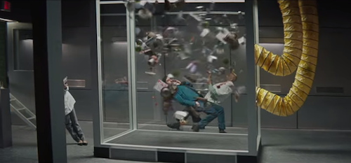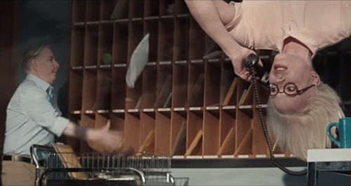 The brand and agency wanted everything in the ad to be made as practical and shot in-camera as possible. “Tilted rooms, harnesses, backwards walking, actors hanging upside-down