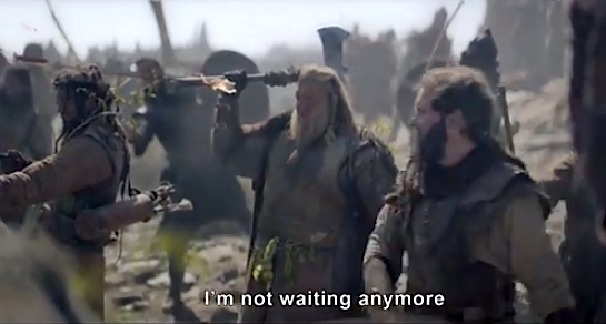 A warrior is trapped in an epic American drama series that is in slo-mo as it’s waiting to come out in France. After watching seasons change around him while he swings his morning star, the warrior decides he’s had enough.