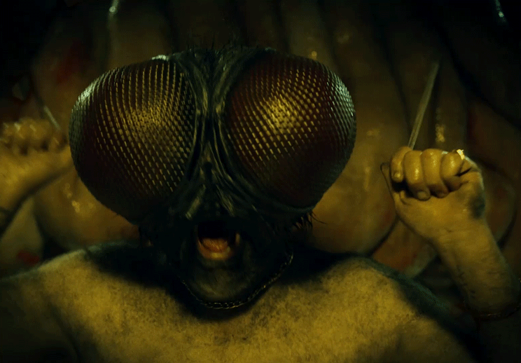 “For me, bringing the fly to life was the final piece of the puzzle that really unlocked this idea. How could we create this character and his world in a way that felt crafted and memorable, and also didn’t break the bank? Ultimately it came down to leaning into what we didn’t have, rather than trying to make it feel like the fly was actually a real fly in a real space. I wanted to lean into the exaggerated way a character like Jared may envision a fly and how it would crawl into his brain. Using techniques like miniatures, prosthetics, and matte paintings also helped to make the tone of this feel fun, rather than horrifically dark.