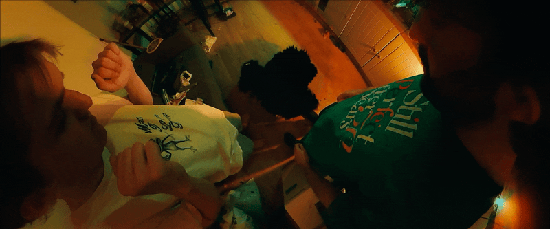 With a mix of practical camera moves and post-production keyframing, Wightman and Marchant developed a unique, high-energy visual language that is both chaotic and meticulously controlled. “We refined the aesthetic shot by shot, and eventually, I wrote TPISH with the 360 camera in mind so that the story played into its strengths,” Wightman continued. “We even made a full pre-vis of the film, editing as we went to nail the timing and choreography of each shot. We’re both acting in it though, so that version will never see the light of day.”