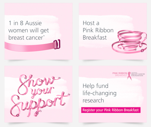 Throughout October, pink bra straps were available to buy at Pink Ribbon Breakfasts and some stores. Women all over Australia, including Australian supermodel, Miranda Kerr, then showed their support by literally showing their support. Social media was filled with selfies of women showing their bra strap and dedicating a donation to NBCF.