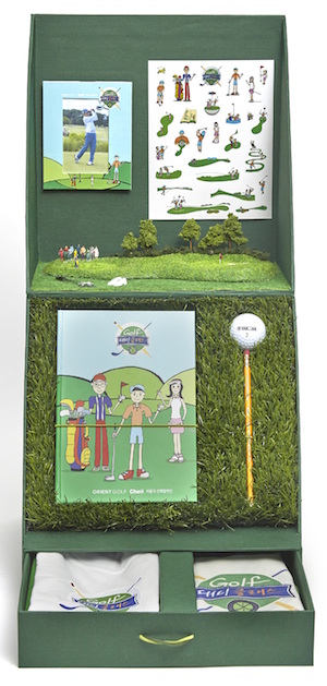 The books are given to kids at the beginning of Golf Daddy Class, hidden inside special green boxes to spark their interest. Inside the green box, are the book and other tools and souvenirs to help them complete the class, such as a golf ball, T-shirt, canvas bag, photo frame and character stickers.