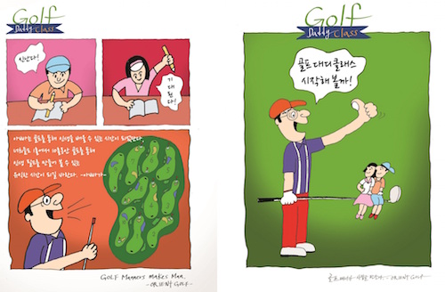 The illustrated book consists of 10 chapters based on the Golf Daddy Class curriculum. Its topics include an introduction to golf, lessons to learn from game rules and golf-related proverbs and a guide to golf course field trip.