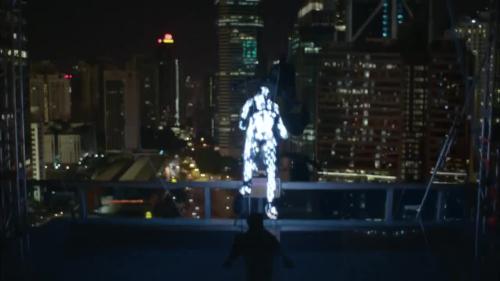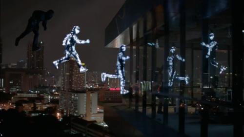 The crew had to deal with 40C heat and humidity on the shoot days. And time constraints – getting scenes that required seven hour set-ups shot before dawn and before the batteries in the suits had to be recharged. Performers had the added stress of wearing lightsuits made of seven layers that were heating up as light travelled through them. And the physcial demands of the motion sequences. Some were kept suspended for lengthy periods upside down or with individual limbs held in precise positions by wires. Creating a lightsuit that would work underwater was another technical challenge a all the electronics had to be sealed off.