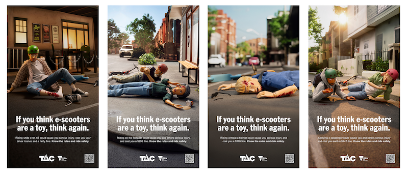 Clemenger BBDO chief creative officer, Adrian Flores, added, “We’re always looking for the talkability factor in our work. Twisting classic toy tropes to create an arresting campaign about e-scooter safety creates a distinctive mnemonic that lives on in people’s minds.”