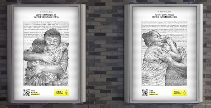 This year’s campaign shows clearly that real-world impact. Cossette and Amnesty are sharing the powerful stories of people who regained their freedom thanks to past letter-writing efforts. The campaign recreates the emotional moments of their release through portraits illustrated entirely with typewriter characters. It creates striking images. Each image, crafted by UK artist, James Cook, is infused with authentic excerpts from the very letters that helped change their fate.