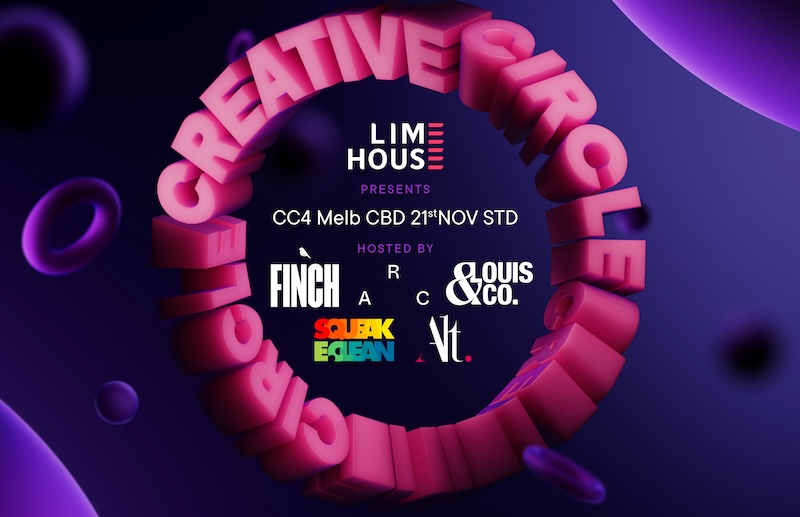 Meet someone different, think something new.Creative Circle founder, Limehouse, is bringing Australian creatives together again for Creative Circle #4, the fun event that supports and benefits the industry. This time, Creative Circle is being hosted in Melbourne, and is co-hosted by five partners, Squeak E. Clean Studios, Alt.VFX, FINCH, ARC, and Louis&Co.