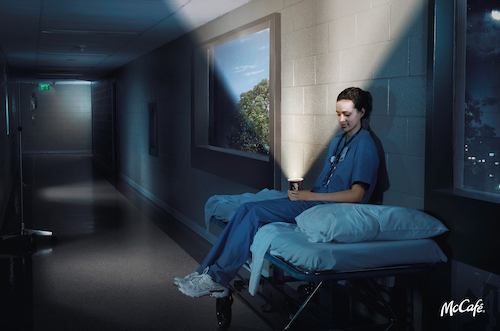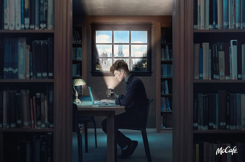 This time, the campaign is by DDB Buenos Aires. No words – a picture says a thousand of them, or in this case, enough to make Macca’s message very clear – when you have to stay up to work, study or make up for hours lost during the day, McDonald’s McCafé is there for you.