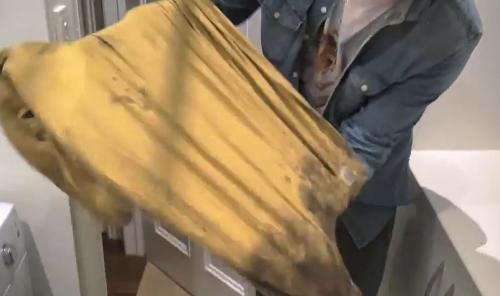 A spiky fish? Yes, this wasn’t an average buy, wear, wash & return adventure. DDB bought a variety of garments (not just a Gary Bigeni cocktail dress) at retail stores, which was filmed using hidden spy cameras. Then came the fun part – the clothes were worn in a series of extreme torture tests – from pig feeding to garbage collecting. Afterwards they were washed, using Radiant, in real world conditions. Finally, a ‘return’ was attempted at the stores where the garments were first purchased.