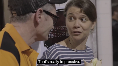 The agency guessed that people would get a kick out of being served a free kebab by comedian, Dave Hughes. So he was given a kebab shop uniform and an unconvincing moustache and became the star of a Punk’d-style stunt in which people got to try a “meat’ kebab that promised to ‘blow their minds”.