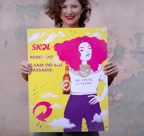 The campaign is called Reposter and what the agency has done is to recreate past Skol posters – without their sexy women manbait images. To do that, the agency called on six female illustrators, Eva Uviedo, Criola, Camila do Rosário, Elisa Arruda, Manuela Eichner and Carol Rossetti, each of whom was allowed to inject what she believed was needed. One illustrator, Arruda, noticed that women were always serving the beer. She wanted women to be seen drinking it.
