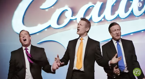 Creature’s film opens with a serious message, delivered by a spokesperson (a black woman), who says, “There’s only one party that stands by its beliefs, while every other party is so similar – it’s like they’re in … harmony.” Then it’s all go on the parody. The cheesy quartet, Coalition, sing the song, Change the Tune, in harmony and with all the clichéd props, demonstrating how similar all their policies sound.