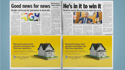 The campaign, Something to Help You Remember, which ironically cuts across all the insurance ad clichés, continues in print with comically transparent ads in the New York Daily News and the New York Post.