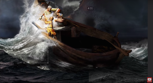 Karla Cordova from Ecuador was asked to recreate Frida Kahlo’s The Wounded Table. Jean-Charles Debroize from France, Caravaggio’s Saint Matthew and the Angel. Mike Campau from the US, Karl Friedrich Schinkel’s Cathedral Towering Over a Town. And Ankur Patar from India, Rembrandt van Rijn’s The Storm on the Sea of Galilee.