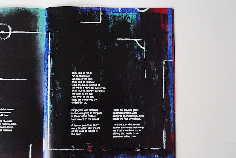 Grey Brasil has published a World Cup sticker album. It mirrors the official World Cup sticker album but this anti-racist sticker album, published by Zumbi dos Palmares University, tells the stories of 62 World Cup players who have suffered discrimination during World Cup games.