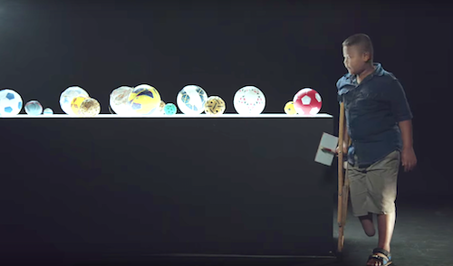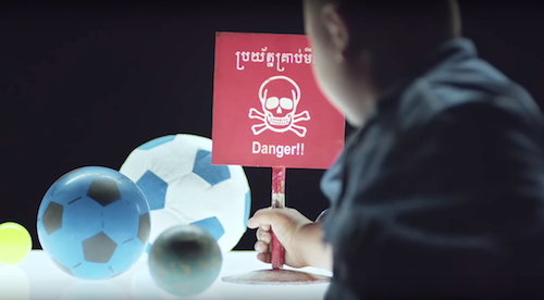 The ad is striking in its starkness. A row of footballs, one child – maimed by a bomb he didn’t see, a danger sign – the ad’s message underscored by the Rodgers and Hammerstein show tune, You’ll Never Walk Alone, that Gerry and the Pacemakers turned into a music chart topper in 1963 – which is also, incidentally, the theme song for Liverpool FC in the UK.