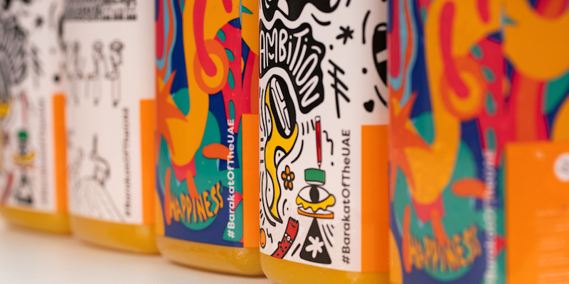 What a wonderful way to spread national pride across the UAE. Not with a grandiose parade. Not with showy fireworks. On a simple orange juice bottle. For the UAE’s Golden Jubilee, UAE fresh juice maker, Barakat, and Havas Middle East collaborated with artists from different emirates to create limited edition juice bottles celebrating the blessings of the UAE.
