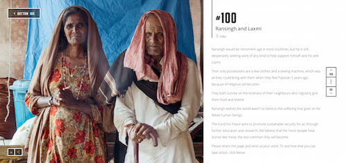 J.J. Messner, executive director at Fund For Peace, noted, “When the world talks about rich lists, the focus is always at the top. But there is a lack of knowledge and understanding about those at the other end of the spectrum. We believe the more people hear stories like these, the less common they will become. The stories of these 100 people are just as important as those at the top and deserve to be heard. We encourage everyone to take a stand on behalf of the people featured in the Bottom 100 – and the millions facing the same struggles. It’s time to take a stand and make clear that poverty alleviation is a high priority for us all.”