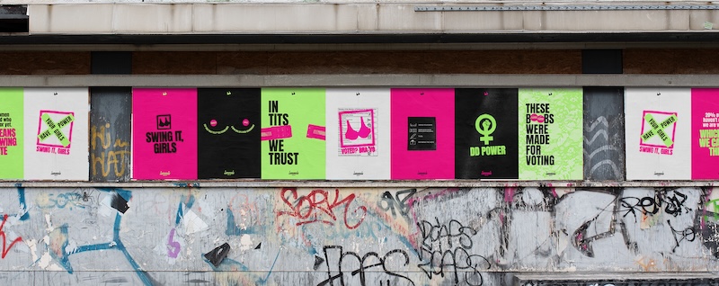 To support its film, Lemonade Dolls has partnered with Global Street Advertising Agency, UNCLE, to create a series of striking street posters, designed in Lemonade Dolls branding, with bra-inspired iconography and straplines to match, including The future is in your bra and These boobs were made for votin’. Out of Home media owners, Clear Channel and LondonLites, have also provided OOH media space for the campaign.