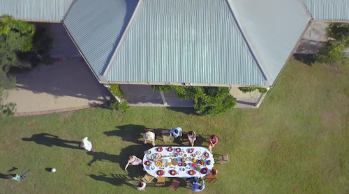 Method Studios added additional capsule-shapes into all scenarios — the paddleboards, the lunch table, the blueprint, and the stadium. This live-action had to be integrated seamlessly into the CGI environment. Then movement was added to everything so that the planet moves in unison with the camera, and one scene moves into the next, creating the perfect flow.