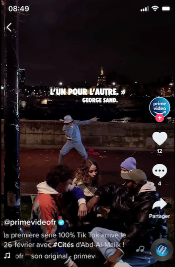 Latest in the new genre, Tik Tok series is Cités, an original idea for Amazon Prime Video France created by its social PR agency, Herezie, Paris.