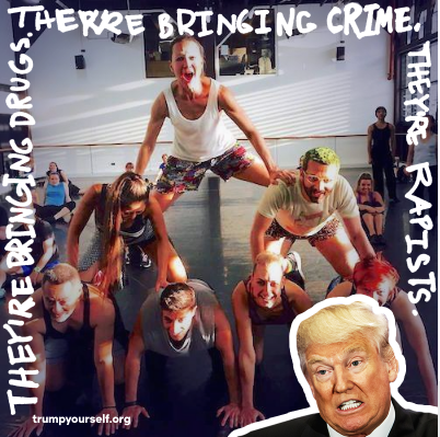 So Clinton has made it possible for some of Trump’s verbal sprays to adorn your Facebook profile with the #TrumpYourself app, available through www.TrumpYourself.org (which is hosted by Clinton’s website, www.HillaryClinton.com)