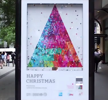 “The 2014 Christmas campaign will be highly visible throughout inner-Sydney via city flags,” Christopher Holt, creative director at Holt explained. “This got us thinking about how to make use of the nature of the medium to augment the creative and give it life. The notion of wind was the basis of this idea.