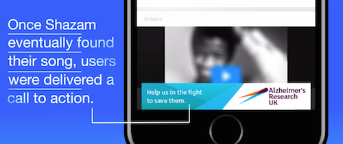 Innocean Innocean Worldwide U.K. has used the ability of Shazam to recall song titles from a snippet of song by taking away its “brain’s” invincibility – mirroring what happens as Alzheimer’s develops.