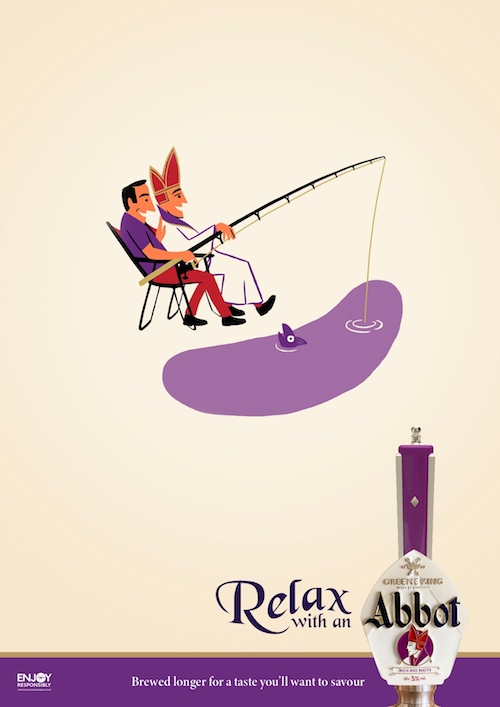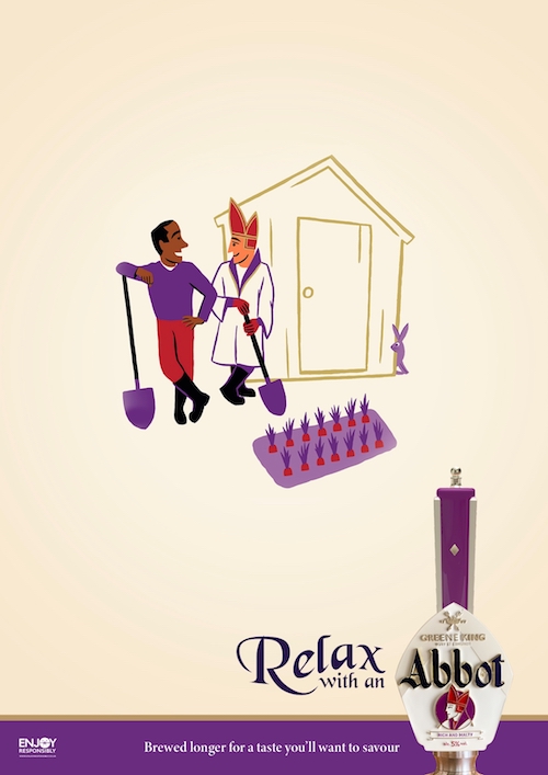 The campaign positions Abbot Ale as a beer to savour and spend time enjoying. (Abbot Ale is also brewed longer to develop its flavour.) The campaign is made up of simple eye-catching illustrations by Paul Thurlby, drawing inspiration from the new look and feel of the Abbot Ale brand.