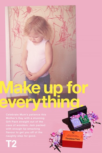 UK creative agency, isobel, has created the new global campaign for Australian tea brand, T2. It draws on humour to inspire people to give the tea as a Mother’s Day gift – in order to Make Up For Everything (all the horrible things they put their mum through).
