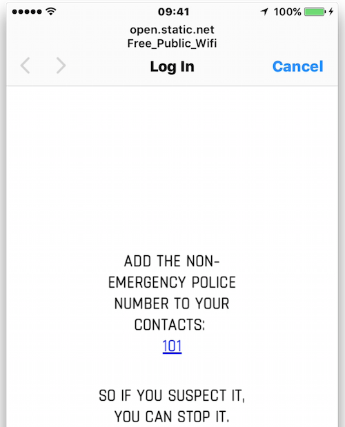 Signal for Help appears to offer unlocked Wi-Fi. But when people connect, they reach not a login but a dramatic short film of a woman pleading for help before being cut off.