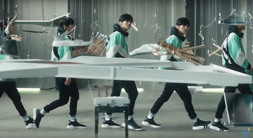 It was shot in Los Angeles, San Francisco, Madrid and Shanghai, and features Dua Lipa, Miles Silvas, Playboy Carti, A$AP Ferg, Marcelo Vieira, Adrianne Ho, Nick Young, Kaytranada and Florencia Galarza, its scenes underscored by a remix of Inaya Day’s Keep Pushin provides the soundtrack.