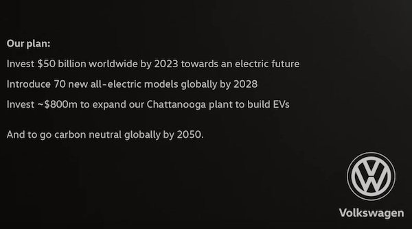 “As we take the substantial steps toward our goal of going carbon neutral globally by 2050, and Volkswagen’s role in ushering in a new era of electric driving, we invite all to join us to a reinvigorated focus on our planet.”