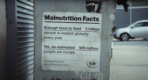 There is nowhere more compelling for a message about food waste than on the bags and trash cans that contain food waste. That is exactly where Dole has placed its new round of Malnutrition Labels.