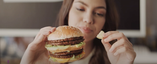 The commercial that features two teens, sharing wordless communication – and obvious attraction – across separate tables. The story underlines the feel-good communication that McDonald’s is known for, but its main aim is to launch the double Big Mac.