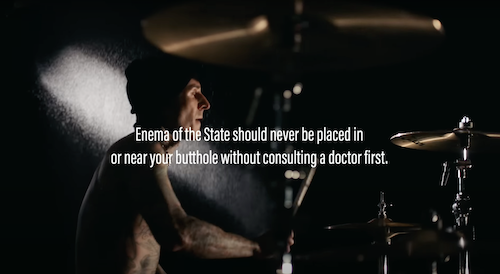 Liquid Death explained the thinking behind the idea like this, “Travis Barker played drums on the hit album, Enema of the State. Does that. Make him an expert on enemas. No. And neither are we. But together, we are launching a revolutionary new enema kit that might turn all of your dreams into reality.”