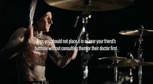 “This limited-edition kit includes a premium, custom-branded enema bulb and a 19.2 oz can of Liquid Death, hand-signed by Barker himself,” the sales pitch explains. “While we understand that this is technically a witty nod to the first Blink album that Barker played drums on in 1999, and that the enema itself is, technically, functional — it’s still a little gross. That being said, even Liquid Death itself labels this a “collectible art piece” and issues a warning underneath the kit.