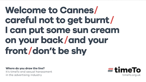 timeTo has a message for everyone going to Cannes – Where do you draw the line? Cannes Lions may have a history of great parties and opportunities to network, but there’s one thing that no industry will tolerate any more, and that’s sexual harassment.