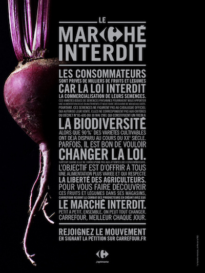 To point out the absurdity of the law, Carrefour’s “black market” (Le Marche Interdit – in English, The Forbidden Market) was promoted through TV, online and print media, where Carrefour depicted its farmers and producers as illegal veggie dealers.