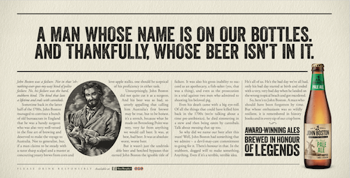 Cam Blackley, chief creative officer, commented, “John Boston’s story is about as outrageous as it is unknown. We know that he was among the first brewers in Australia and that his original beer was eye-wateringly bad.
