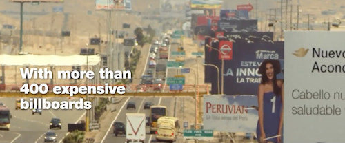 Ad placements on the billboards along the highway are the Peruvian equivalent of having a Super Bowl spot. The Hijcked Highway experience demonstrates how advertisers can compete for consumer attention with far less media investment, and in this case, adding a very powerful call to action.