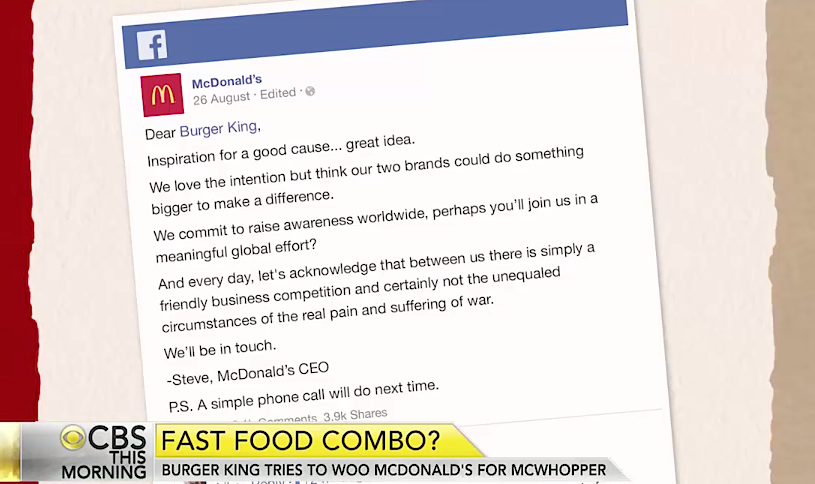 When Burger King put the idea to McDonald’s (which it did publicly, on social media), its response was…shall we say, lukewarm.